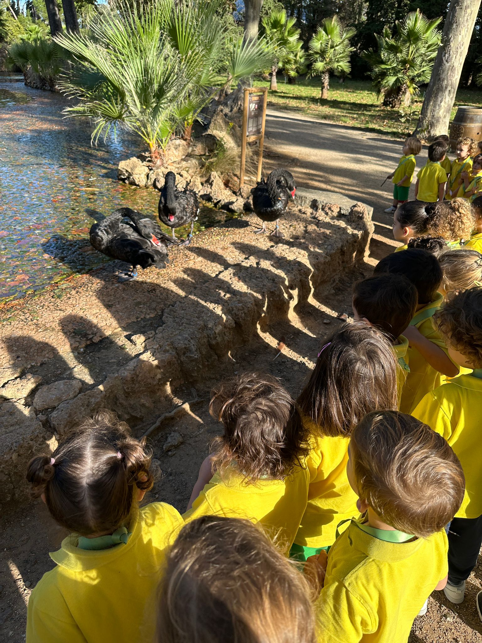 Quan hem arribat al Parc, hem vist els arbres plens de fulles de tots colors: grocs, taronges, vermells i marrons. Hem passejat i hem sentit el soroll de les fulles quan les trepitjàvem. Ànecs, paons, oques, galls, tortugues i pericos hem pogut saludar pel camí.