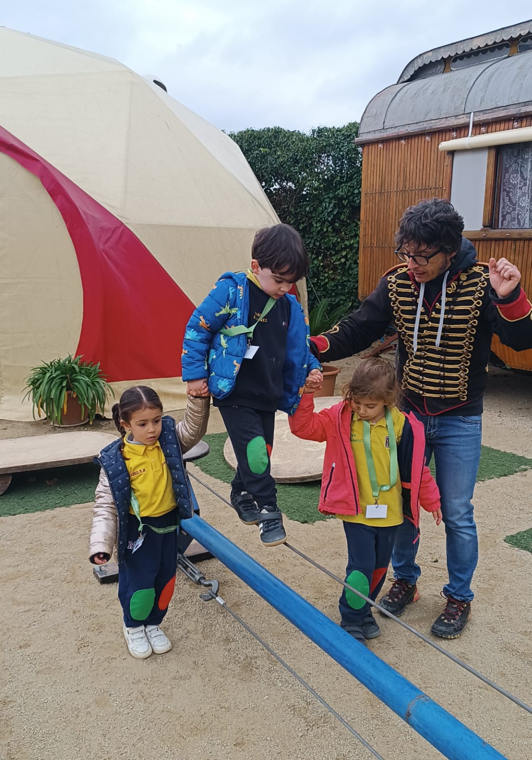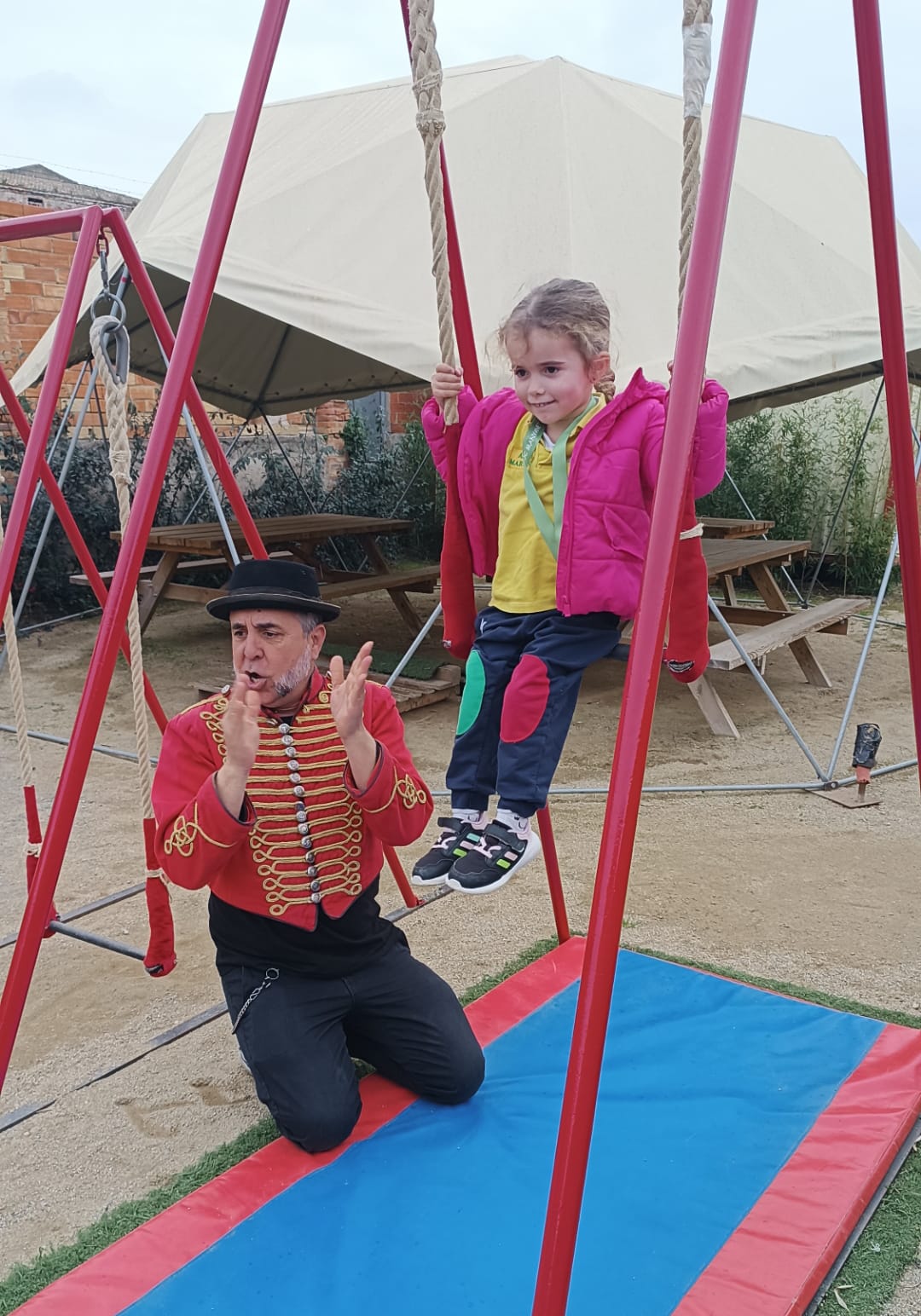 Només arribar, l’emoció es notava a les nostres cares, perquè un presentador ens va venir a buscar a la parada de l’autobús. Un cop arribats al lloc, tot era nou: la carpa, els materials de circ i aquell ambient tan especial que convidava a jugar i experimentar.