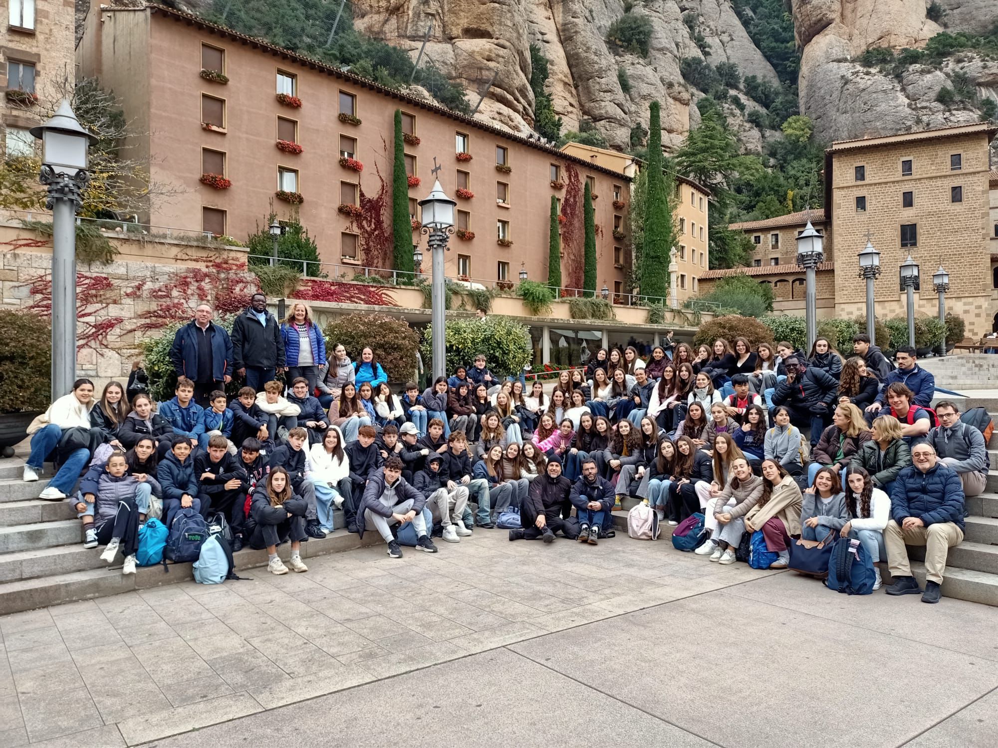 Per finalitzar el dia, vam dinar tots junts i vam gaudir d’una estona de lleure amb els nostres companys i companyes de Reus, donant un tomb per Montserrat i finalitzant la trobada amb el cant dels adeus, mentre tots els joves i professors creuàvem les mans i els peus en senyal d’amor i de pau.
