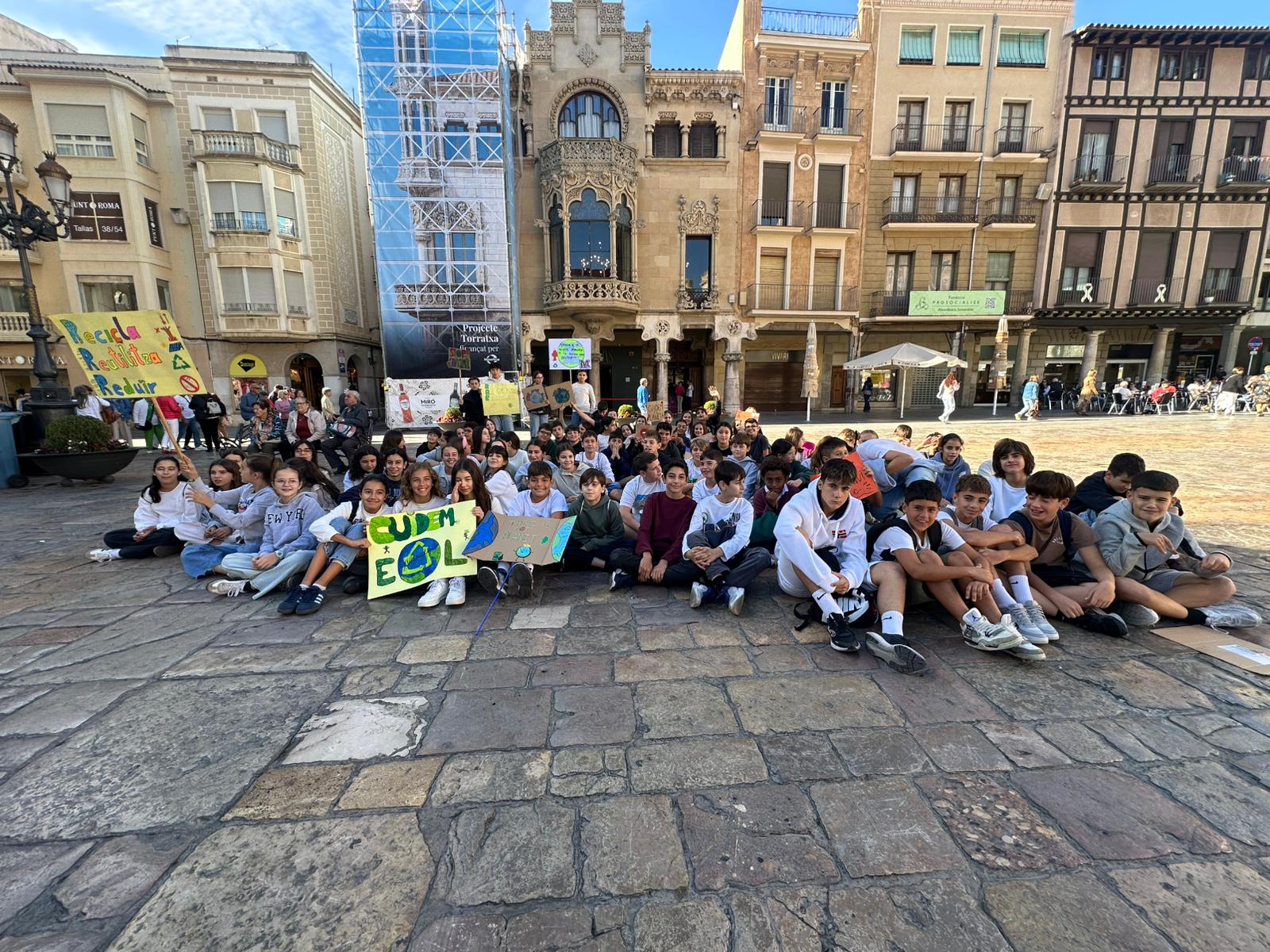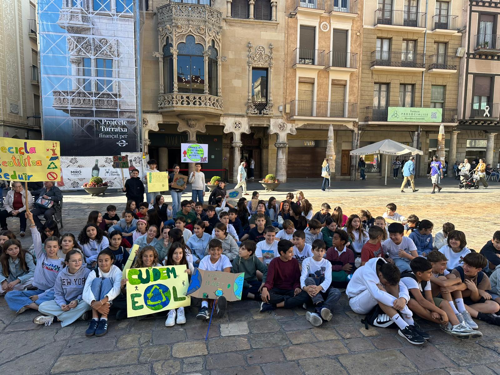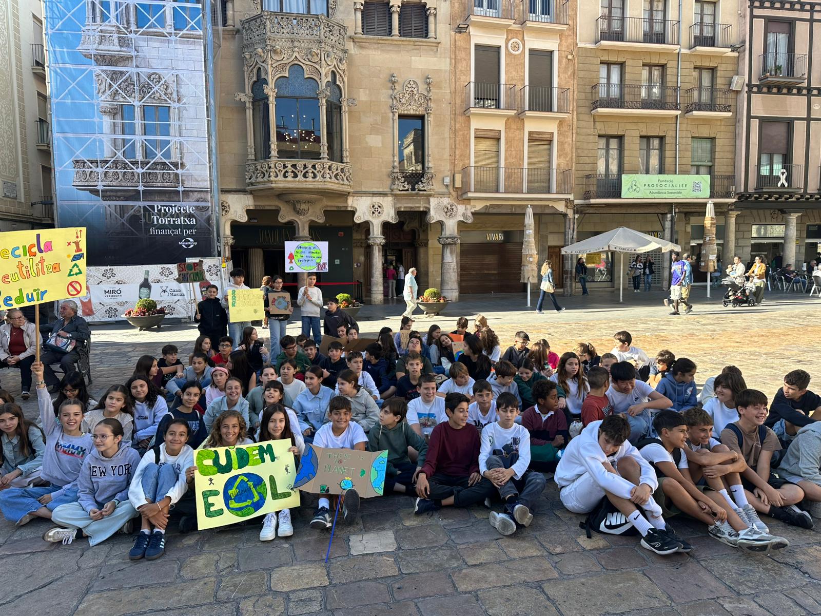 Els alumnes de 1r d’ESO han estat presents a la manifestació pel Canvi Climàtic, amb cartells fets a mà i missatges clars: “El planeta no espera”, “Cuidem el planeta!”. Abans de l’acte, van dur a terme activitats de sensibilització a l’aula per entendre l’impacte del canvi climàtic i el paper de cadascú.